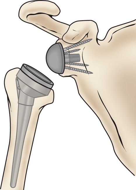 The metal ball that replaces the humeral ball is usually made of stainless steel, and the stem that attaches it to your arm is usually made of titanium. The glenoid socket is replaced with a polyethylene cup.